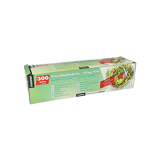 Med en längd på 300 meter och en bredd på 30 cm räcker folien länge och passar de flesta fat, skålar och plåtar. Tjockleken på 11 mikrometer ger en bra balans mellan styrka och smidighet, vilket gör folien enkel att arbeta med utan att den går sönder i onödan. Förpackningen levereras i en praktisk låda med en dispenseröppning som underlättar hantering och avdragning av rätt mängd folie vid varje användning.